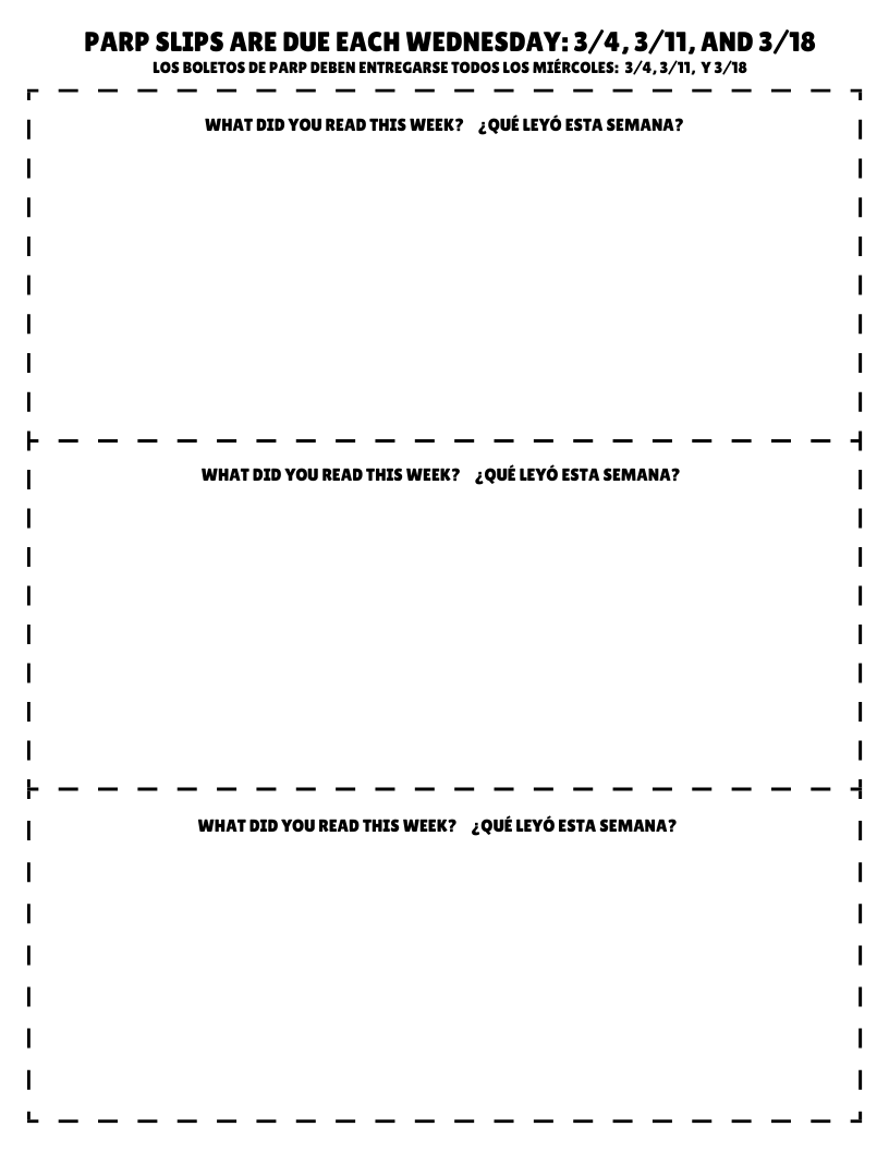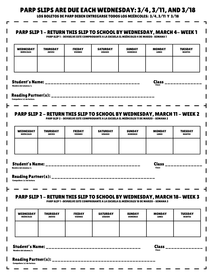 WEDNESDAY, 3/18: PARP SLIP #3 DUE
